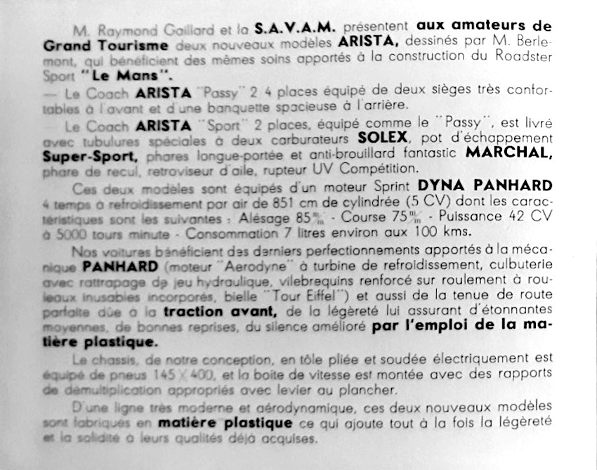 1959 : ARISTA → Faltblatt S.A.V.A.M. Arista „Passy”